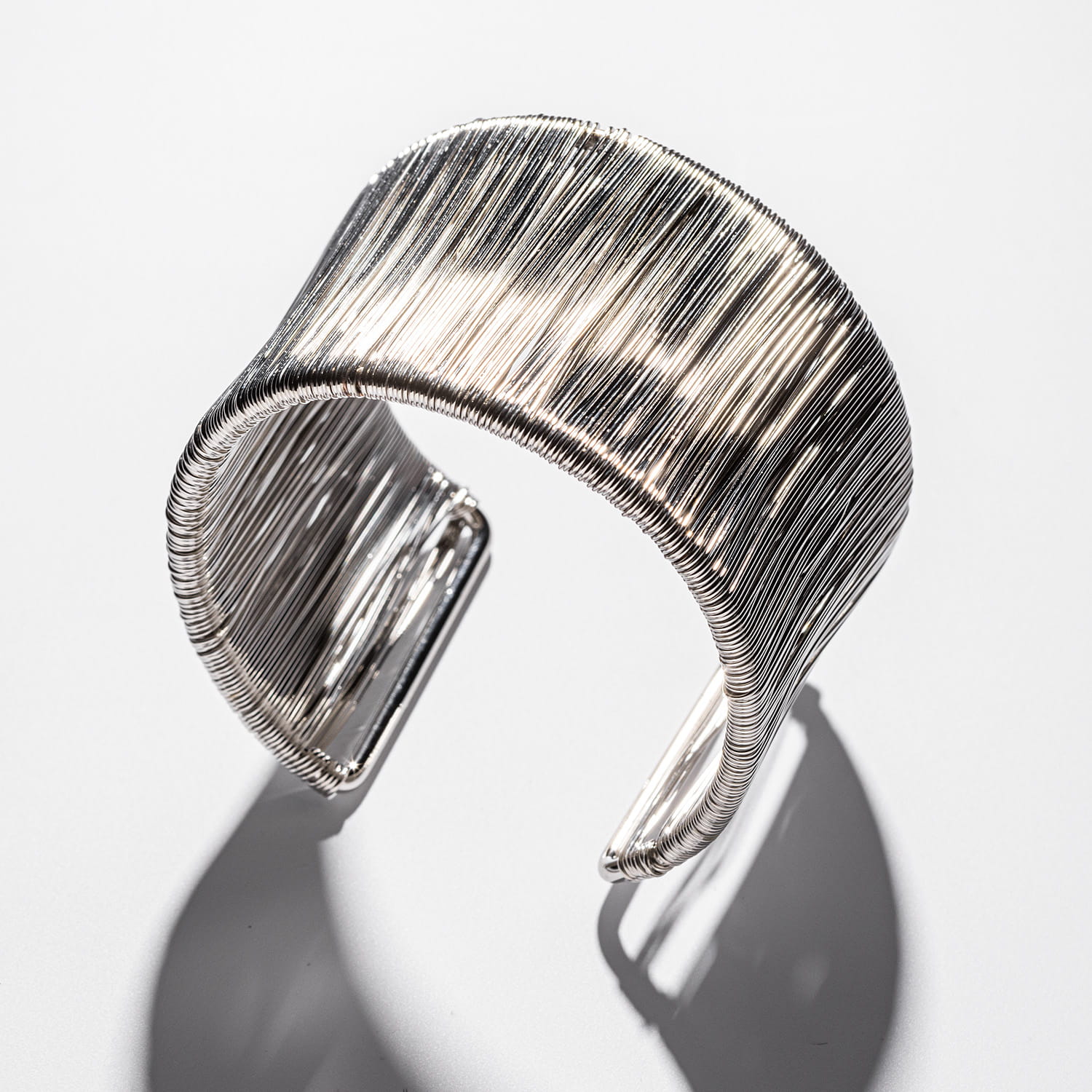 Bransoletka składa się z maluteńkich drucików naciągniętych na obręcz, tworzących delikatne i subtelne wzory. To precyzyjnie wykonana praca, która dodaje bransoletce wyjątkowości i elegancji.