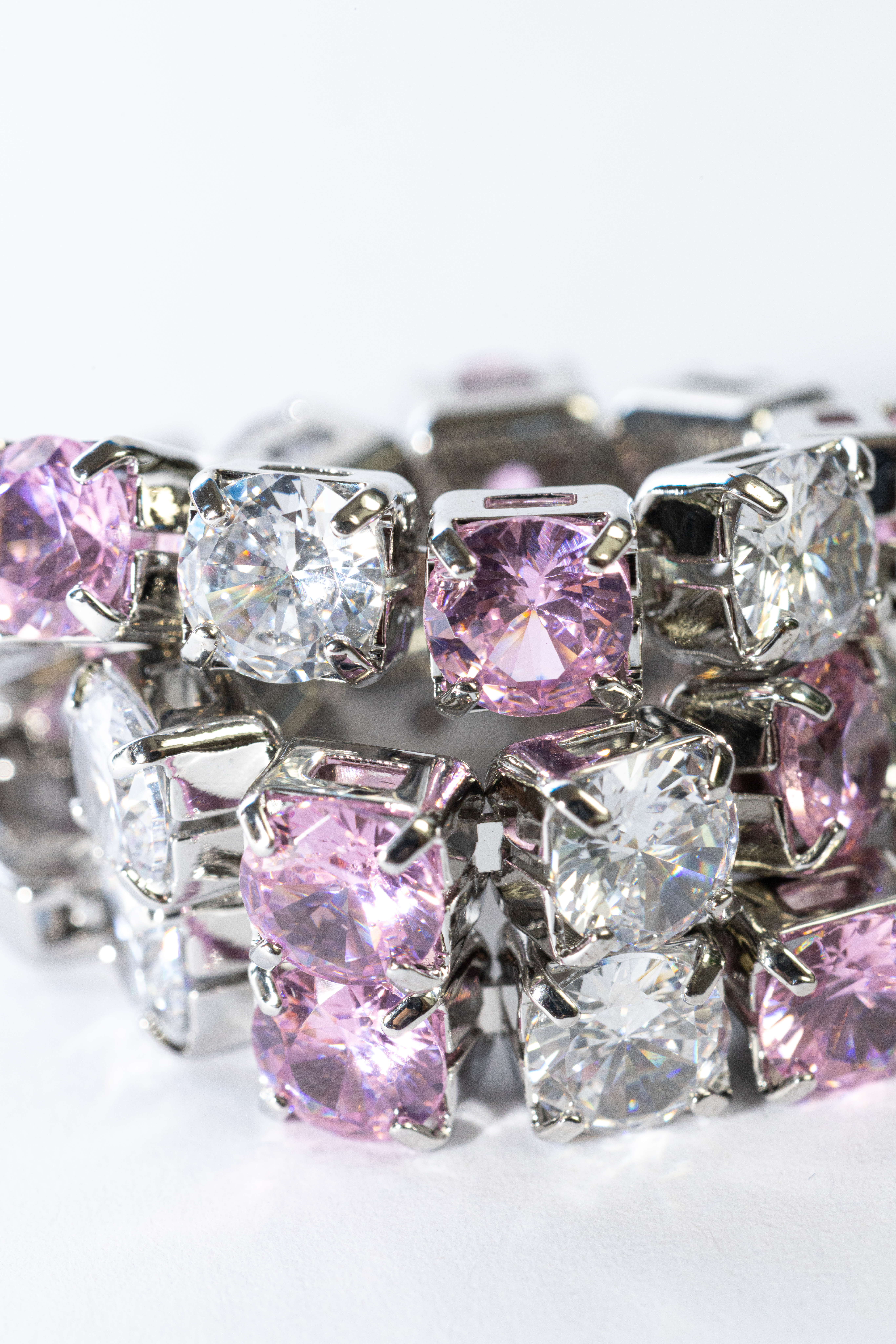 Bransoletka Panama, to klasyczna bransoletka tenisowa. Idealna, z cyrkoniami białymi i różowymi naprzemiennie ułożonymi. Efektowna, delikatna, ponadczasowa. Do kompletu pięknie pasują pierścionki Panama.