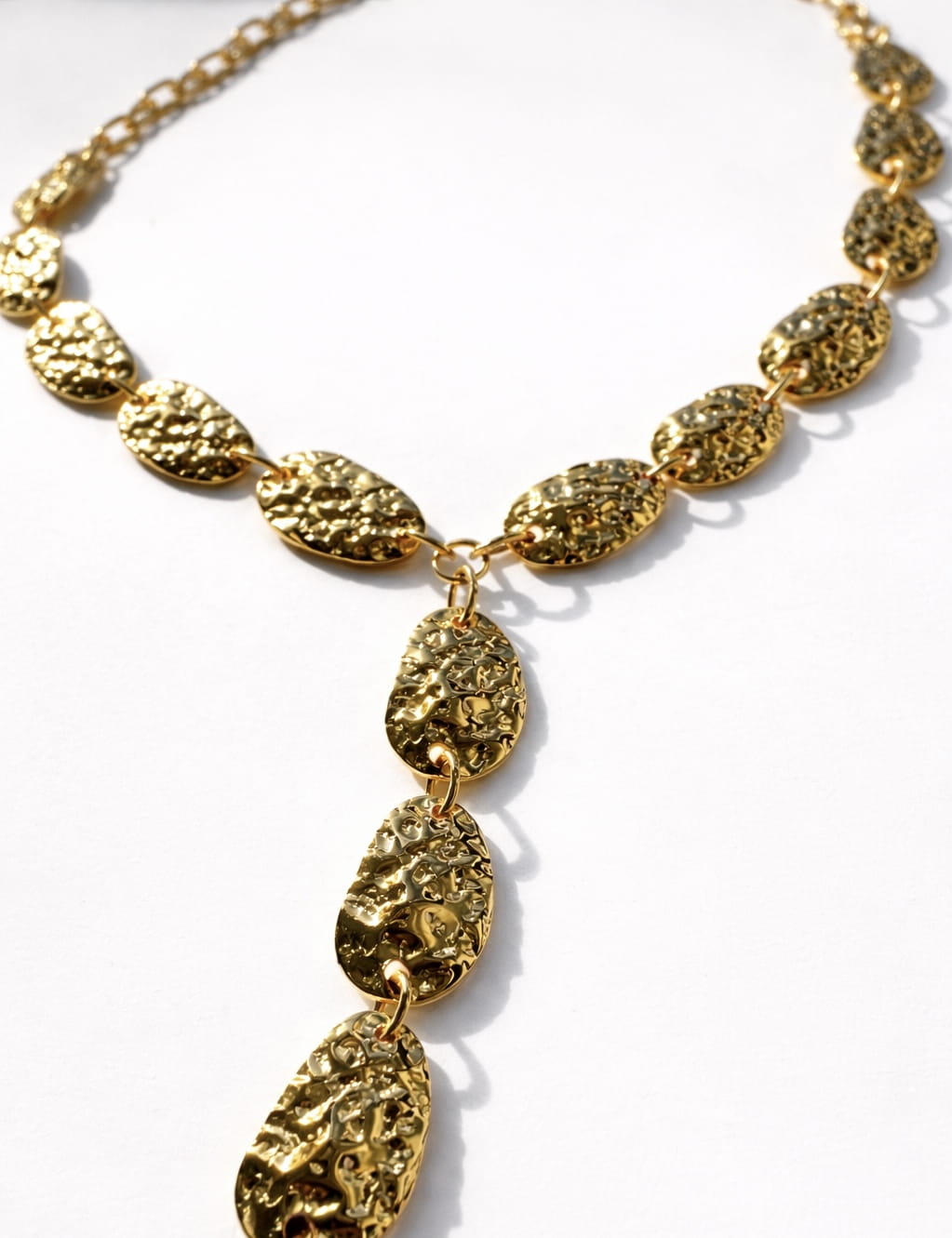 Regulowana długość pozwala idealnie dopasować go do stylizacji — możesz nosić go wyżej, minimalistycznie, albo niżej, gdzie pięknie układa się w linii biustu, dodając sylwetce lekkości i elegancji.