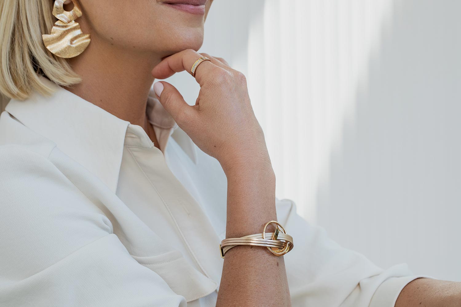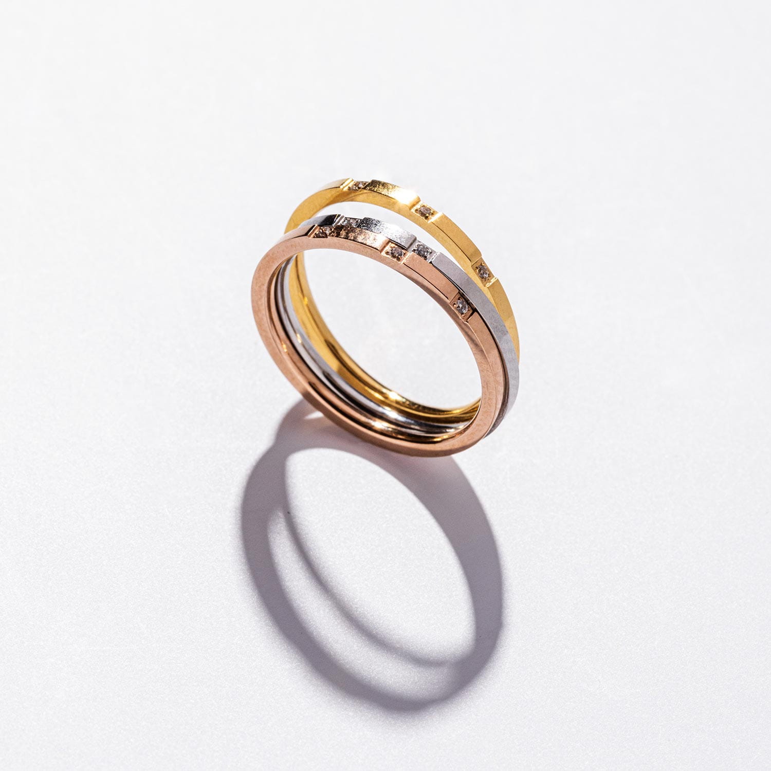 Pierścionek Bonn marki So!Me to bardzo oryginalny pierścionek wykonany z trzech obrączek w trzech kolorach: złotym, srebrnym i różowym złocie z kryształkami. Jego wzór nawiązuje do miasta Bonn, które słynie z pięknej architektury. Pierścionek ten tworzy harmonijną kompozycję i pięknie prezentuje się na dłoni. Jest to idealny dodatek do każdej stylizacji i doskonale podkreśla kobiecą elegancję i styl. Idealnie nadaje się na prezent.